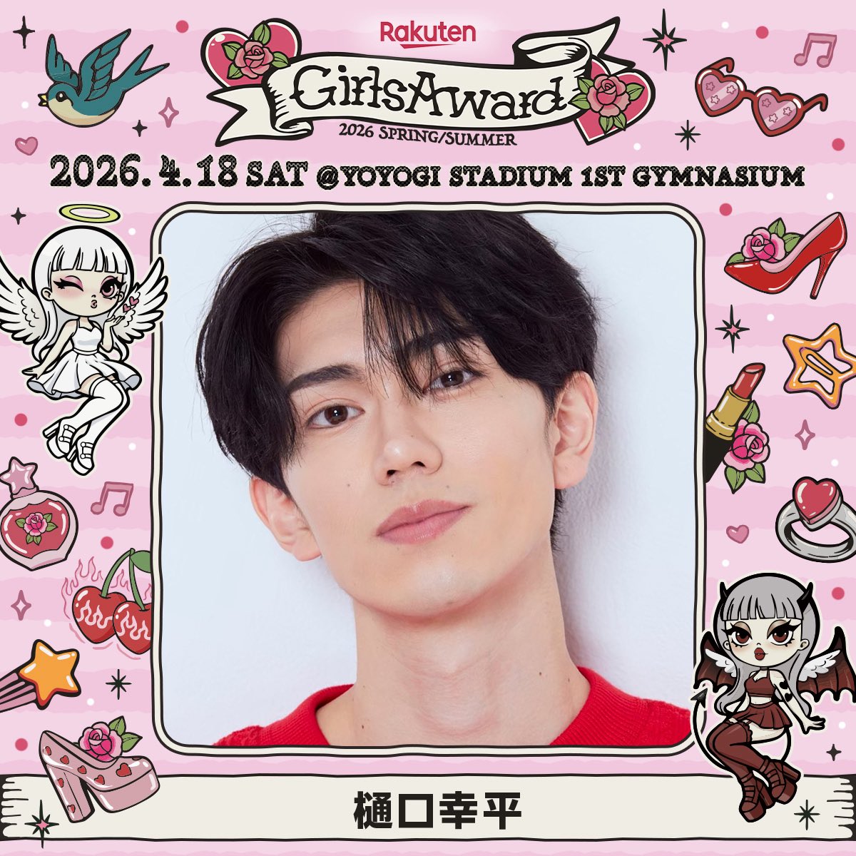 4月18日(土)代々木第一体育館にて開催する「Rakuten GirlsAward 2026 SPRING/SUMMER」に、樋口幸平の出演が決定いたしました!